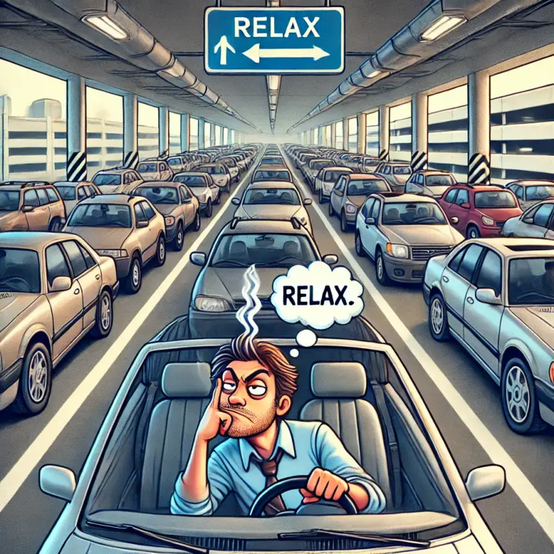 Dus, met een subtiel tikje op de toeter - werkelijk, het was nauwelijks meer dan een vriendelijk kuchje van mijn auto - probeerde ik de bestuurder voor mij op andere gedachten te brengen. Helaas. Hij gaf geen krimp. In plaats daarvan keek hij in zijn spiegel en maakte een handgebaar dat overduidelijk betekende: “Relax, man.”